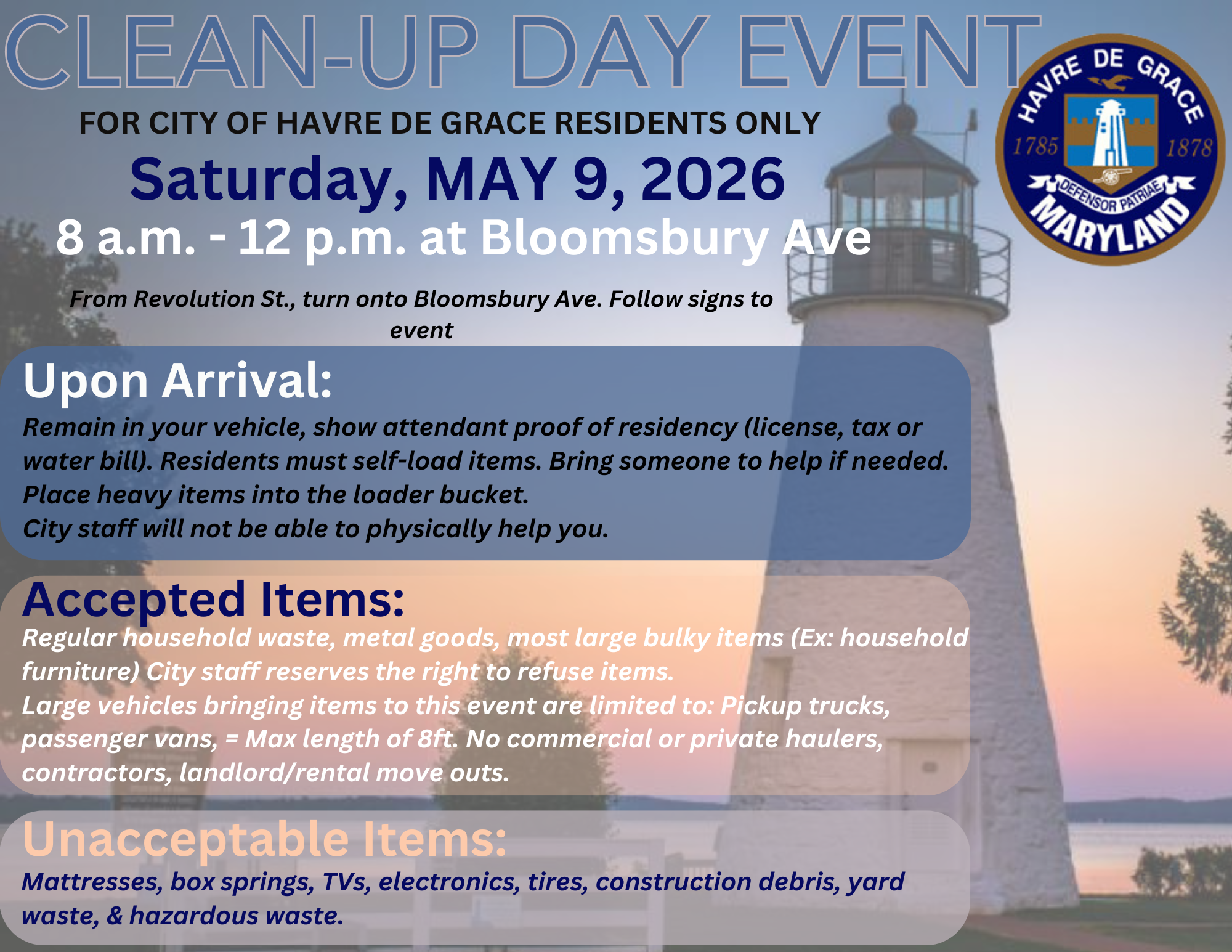 Clean-Up Day Event for Residents – 5/9/2026 Havre de GraceClean-Up Day Event for Residents – 5/9/2026